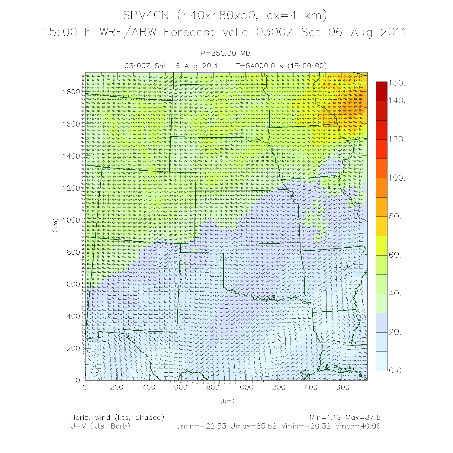250 mb Wind Speed